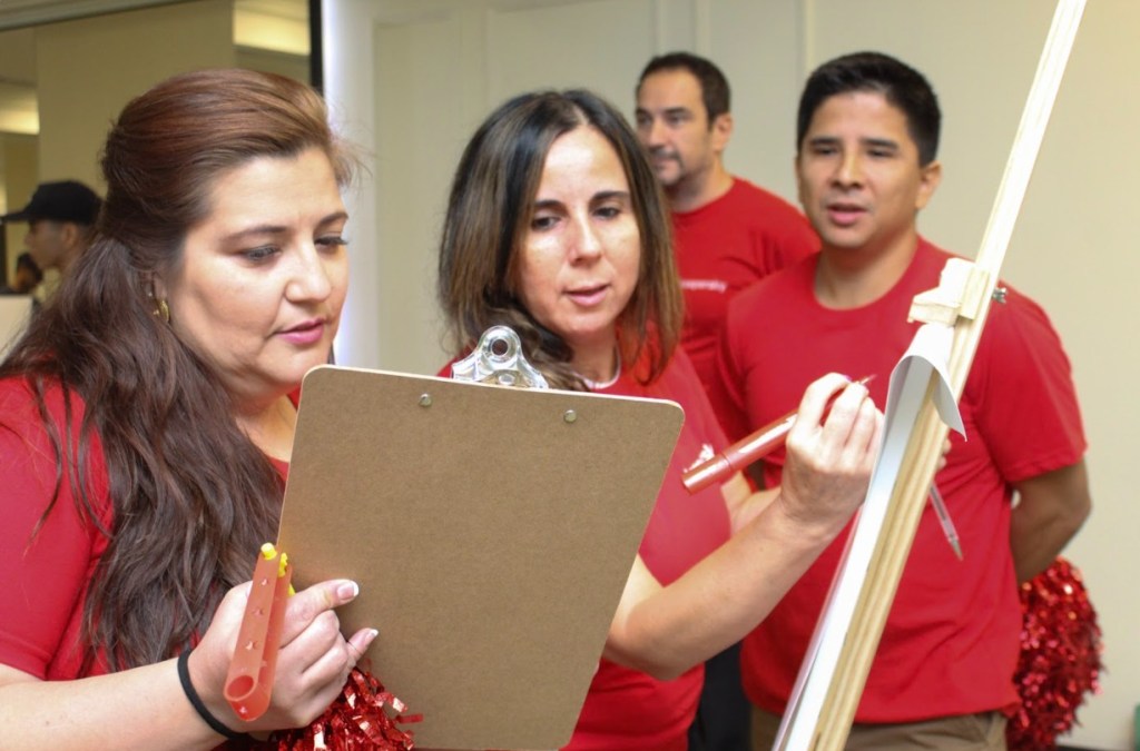 ¡Es momento de sacar el artista que llevas dentro! En esta dinámica, los participantes reinventan la letra de una canción conocida, basándose en la historia y esencia de su empresa. Luego la interpretan en formato karaoke frente a todos 🎶.